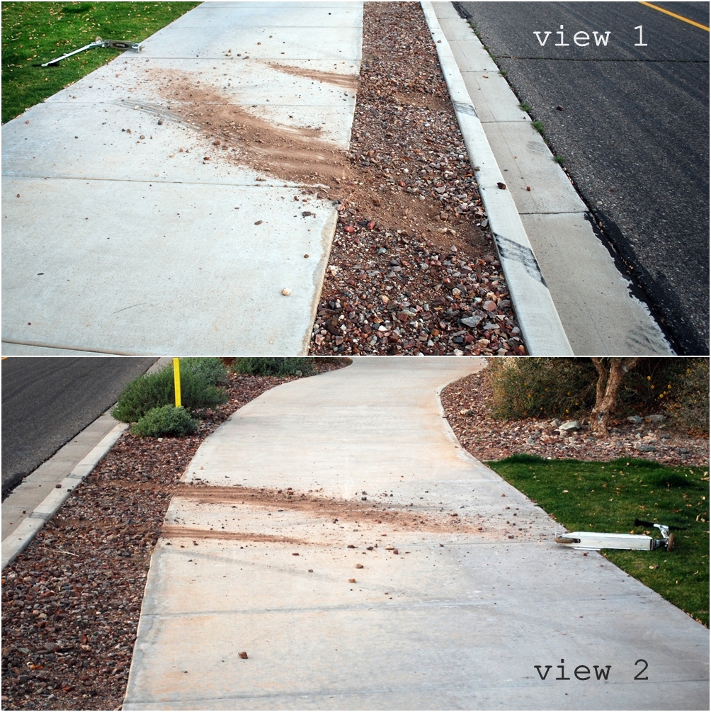 accident, car, scooter, sidewalk, skidmarks, street, thedailysnap2013